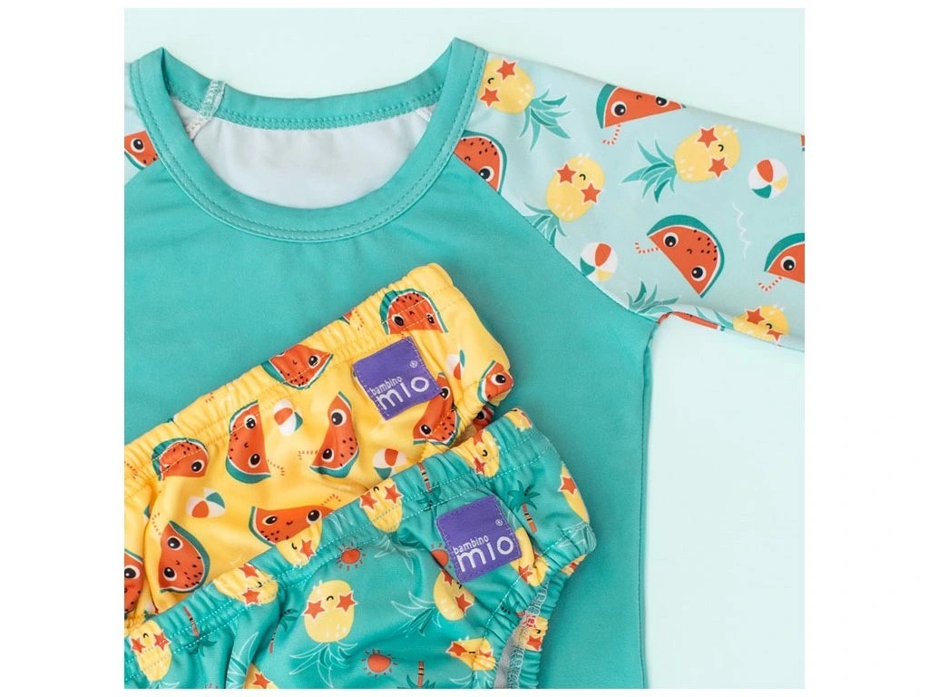 Perfektní UV50+ ochrana pro malé vodomily! Chraňte pokožku dítěte s našim dětským tričkem nice do vody s UV filtrem. Vyrobeno z tkaniny, která poskytuje ochranu proti slunci UPF 50+ pro ta místa na těle, která sluníčko snadno spálí. * Součástí sady jsou i opakovaně použitelné kojenecké plavky, které se snadno používají a jsou dokonalým řešením pro vaše dítě ve vodě, protože s tímto výrobkem není třeba nosit žádné další pleny.