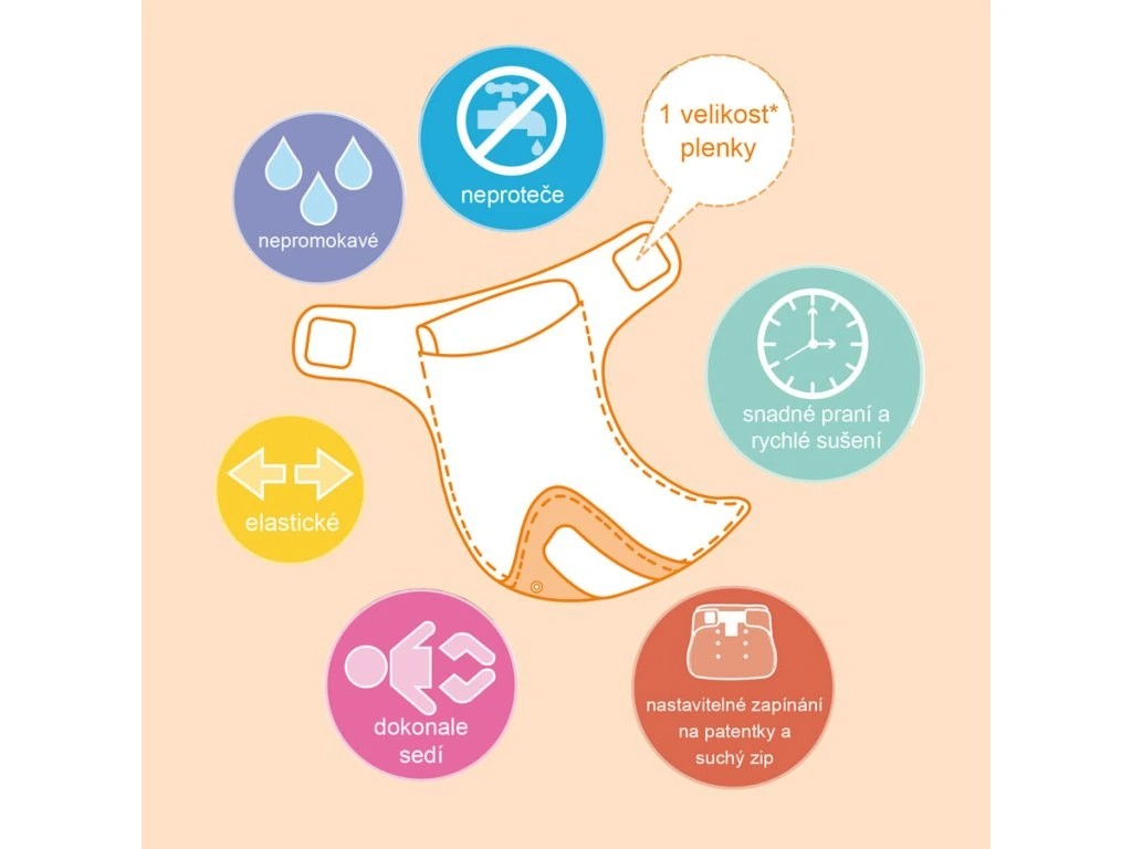 • Jednovelikostní plenku lze používat od narození po nočník a proto není potřeba zakoupit další pleny.