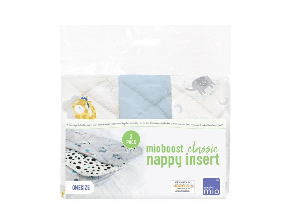 Potřebujete zvýšit kapacitu svých látkových plen? Pak by vám mohla pomoci plenková vkládací absopční vložka Mio Boost. Ta je tvořena superabsorpčním jádrem a separační vrstvou vytvářející barieru proti zpětnému prosakování na pokožku dítěte. 3 kusy v balení.Nově s potiskem Dreamland.